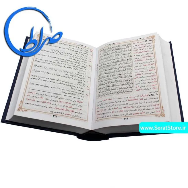 ترجمه و شرح واژگان قرآن در کنار آیات به صورت اِل لاتین قرار دارد .