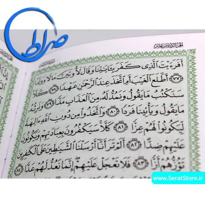 ابعاد این مصحف شریف 17.5 * 13 * 2.8 سانتیمتر است .